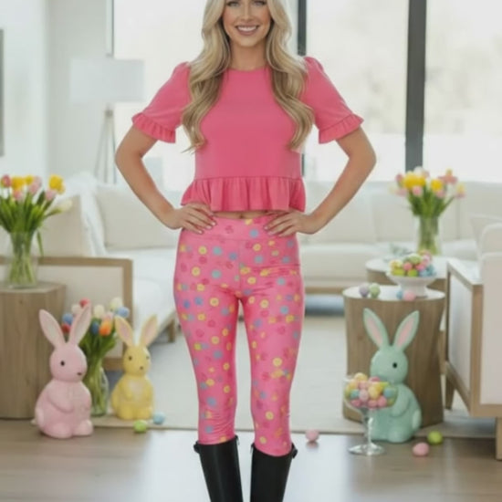 Womens Easter Leggings - High Waisted - Buttery Soft - Pink